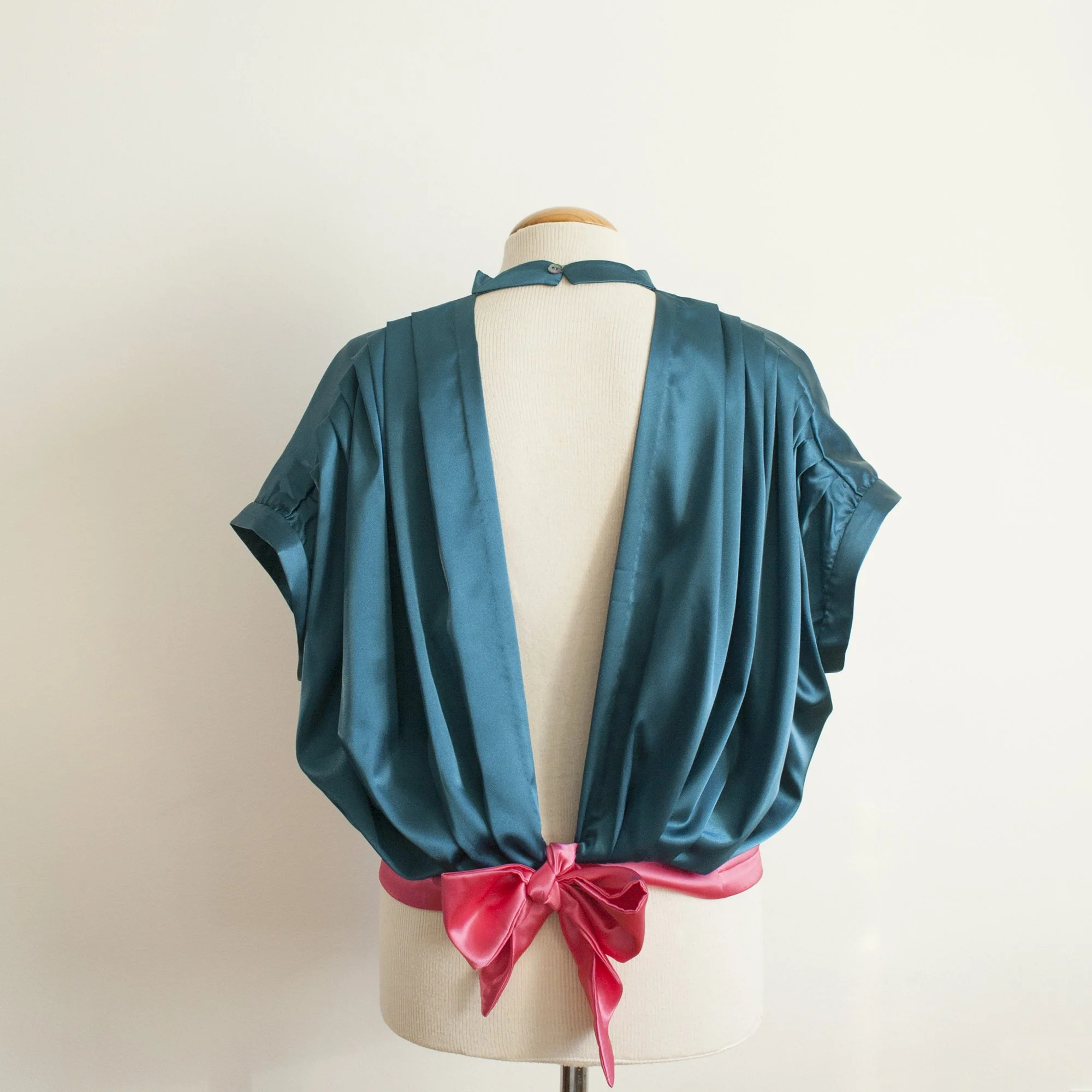 Torera en algodón 100% decorada con puntilla bordada. Manga caída, bajo redondeado. Interior en algodón 100%.